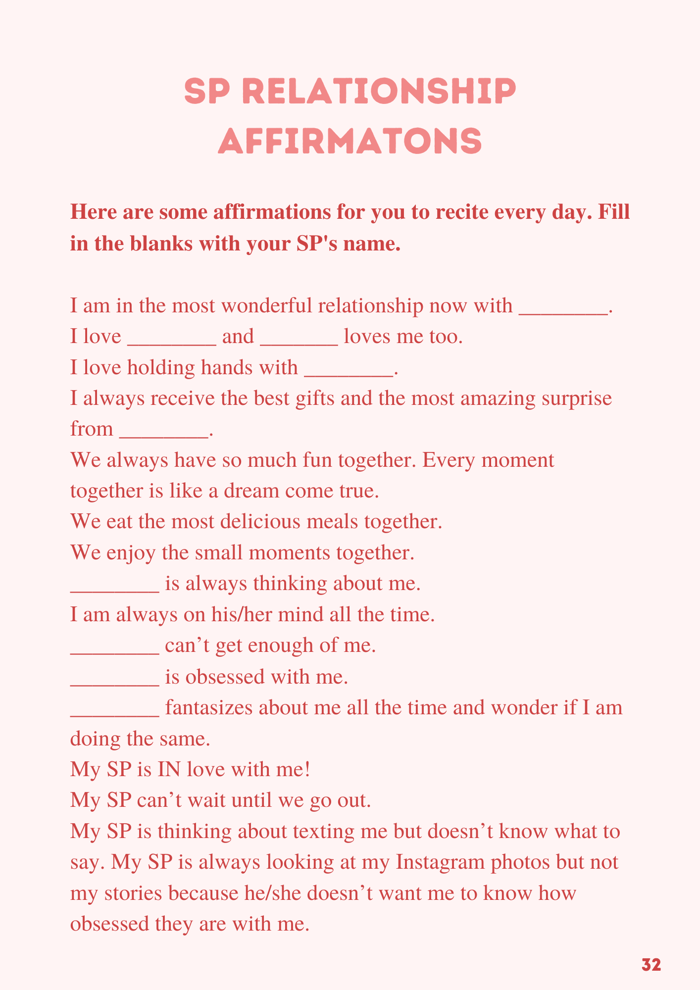 In my book, I share with you all of the secrets you need to know on how to manifest your specific person. This book is full of exercises of things for you to do so that you can manifest your specific person or your ex into your life.